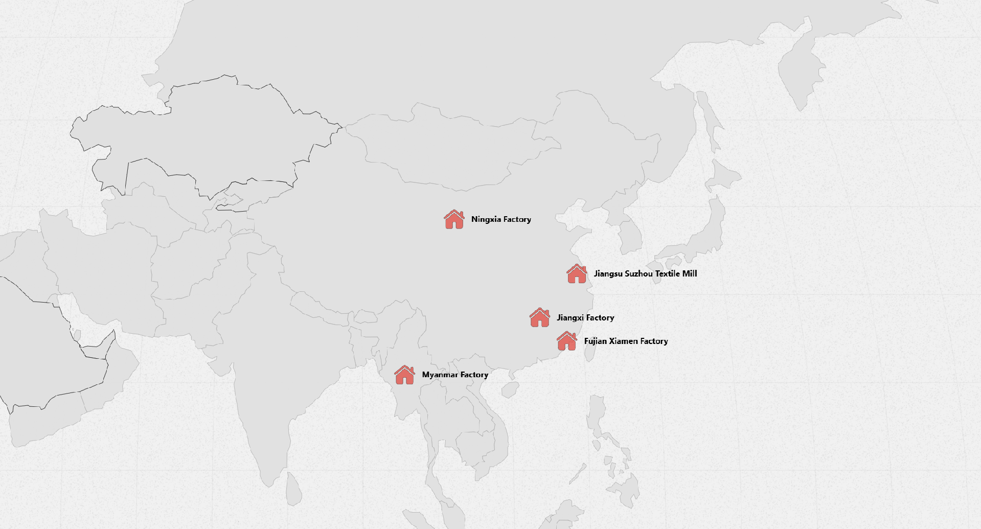 Production Bases – Fujian-China, Jiangxi-China, Jiangsu-China, Ningxia-China, Myanmar.