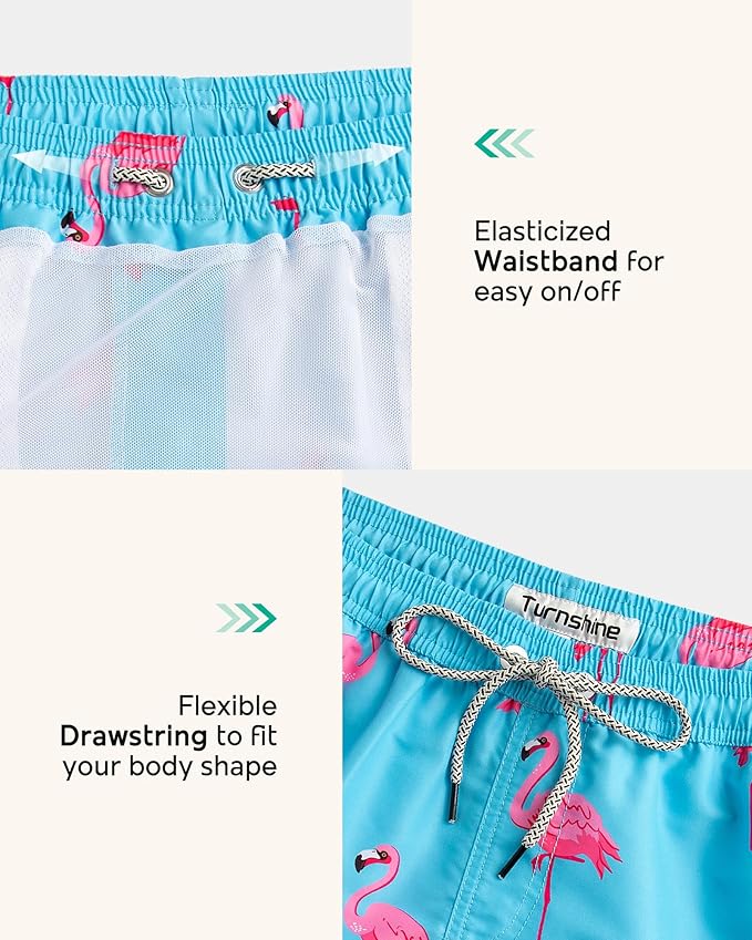 4) Elastic Waistband: Men's swim trunks are equipped with an elastic waistband that allows free adjustment and makes putting on/taking off easier and faster.